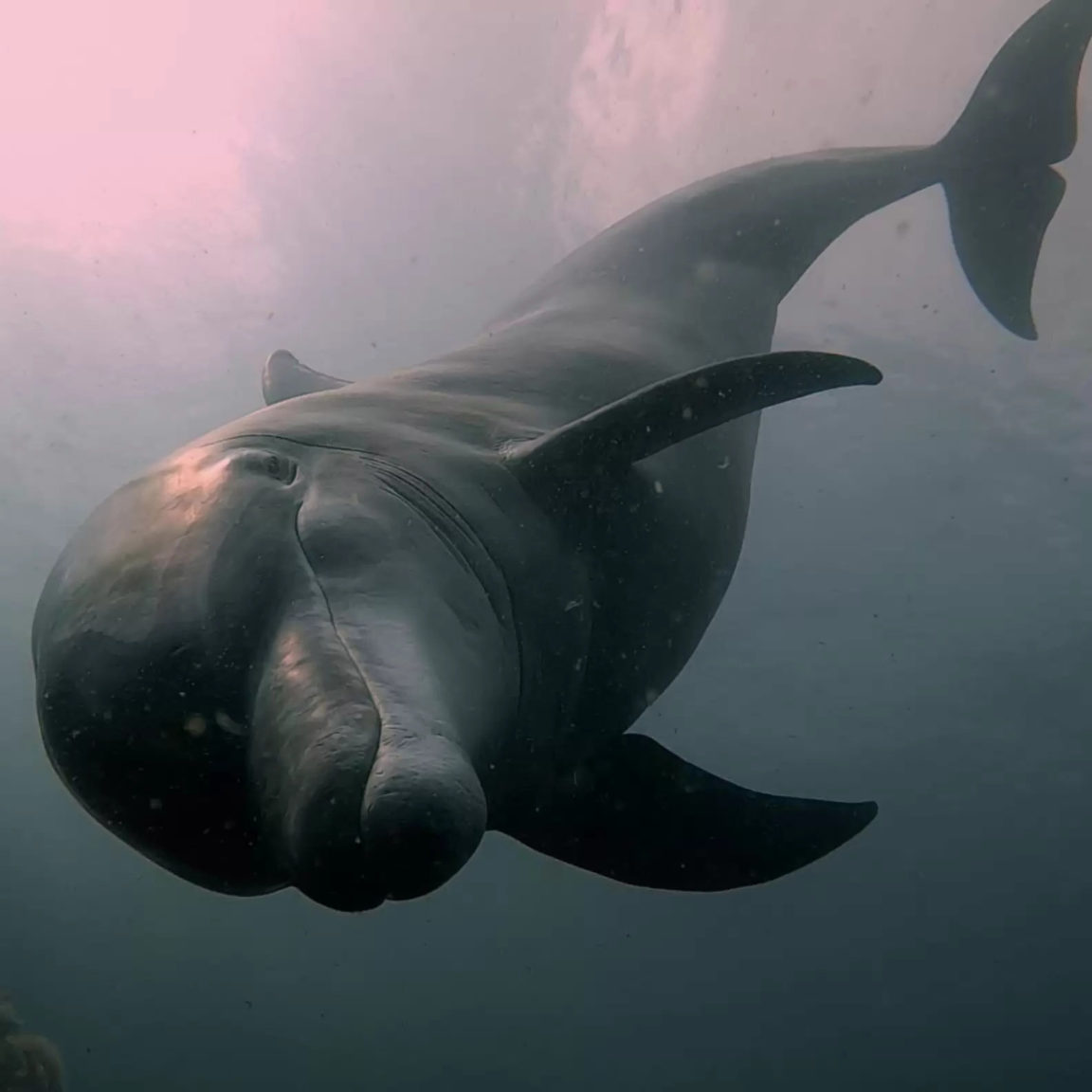 愛爾蘭海岸有一隻叫Dusty的野生海豚,牠已經在這裡生活20多年,當地不少人都看到過牠的身影,還有很多人曾跟牠互動。Evan Pender在這一海域潛水時,就遇到了Dusty。Dusty似乎對這位潛水客很感興趣,每次他來潛水,都會游過來迎接~