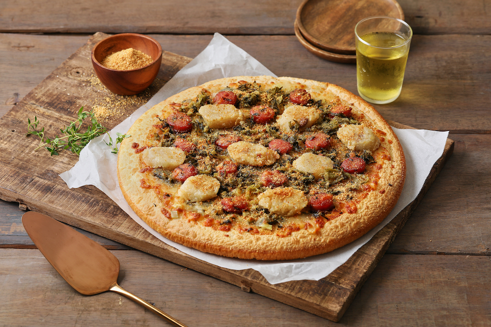 ▼拿坡里披薩與新東陽再度創意聯手跨界異業合作,創意十足的台味披薩-「大腸包小腸披薩」,中西合併的和諧美味,提供給披薩愛好者的您全新味覺新體驗;「大腸包小腸披薩」使用台灣第一品牌新東陽香腸,特選其招牌特製三星蔥香腸與糯米腸的靈魂搭配,古早味小吃在披薩相會。