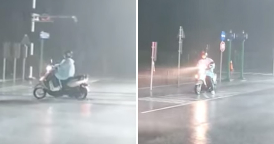 女騎士暴雨中練車!她認真擺頭觀察 網笑:已見過大風大浪
